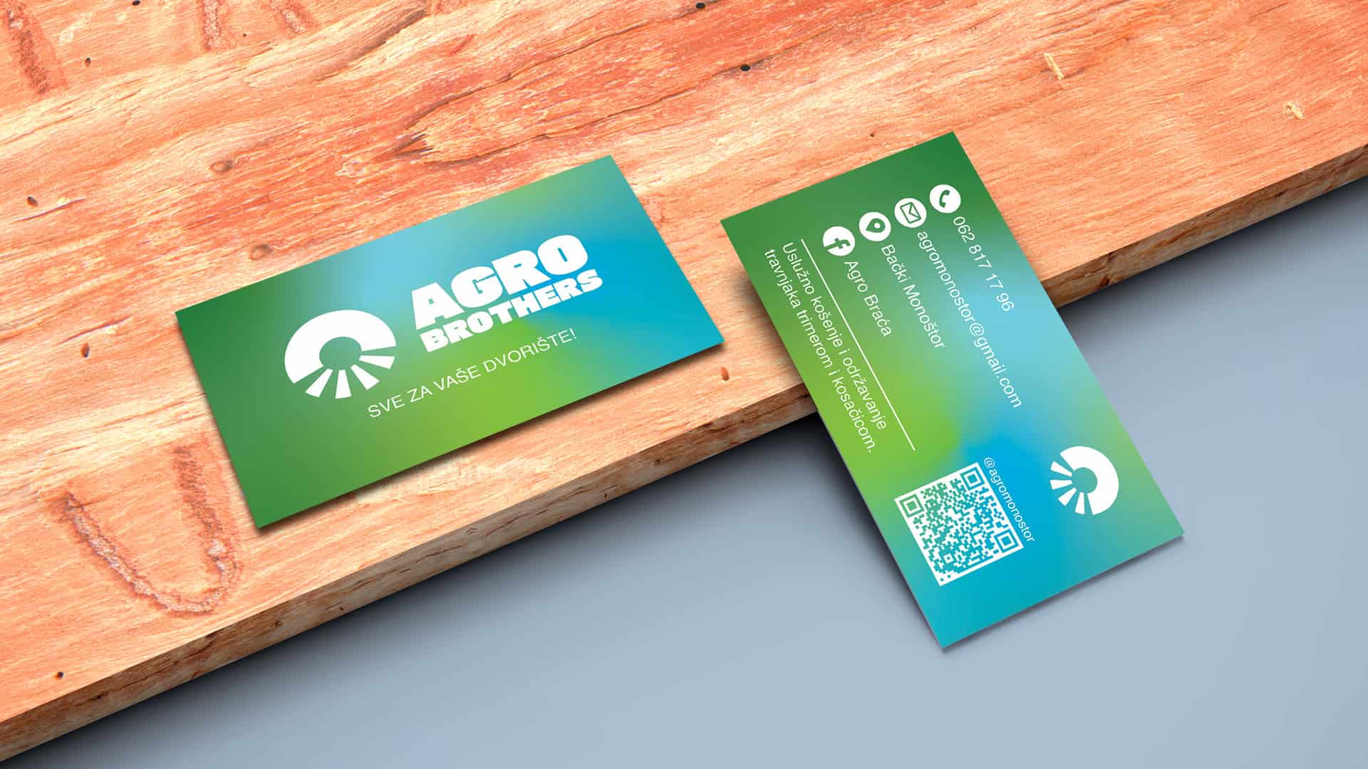 Kompletan vizuelni identitet koji obuhvata dizajn logotipa, vizitkarti i promotivnih flajera. Kroz moderan, ali profesionalan dizajn, postignut je balans između savremenog vizuelnog izraza i povezanosti sa prirodom, što odražava delatnost firme u agrarnom sektoru. Projekat je realizovan od početne ideje do finalne pripreme za štampu.